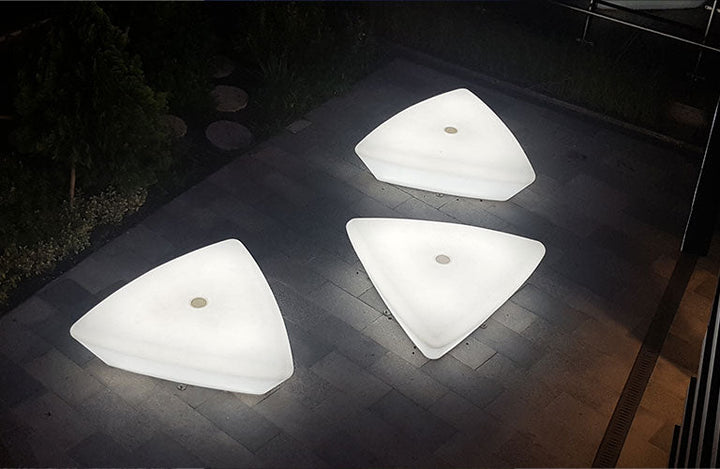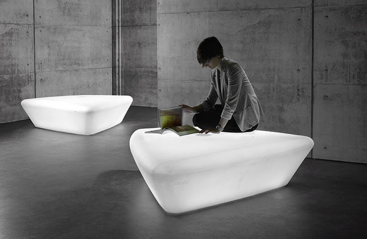 Dit driehoekige semi transparante zitelement is geschikt voor binnen-en buitengebruik.