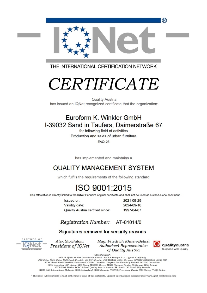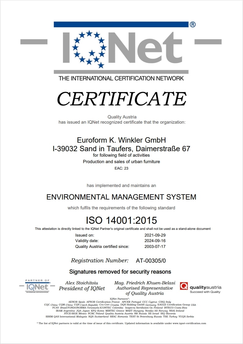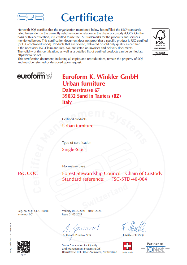 Al sinds 2009 werken vertegenwoordigen wij in Nederland de Italiaanse fabrikant Euroform-w. Wat wij zo bijzonder vinden, is dat zij al sinds 2008 CO2 neutraal geproduceerd straatmeubilair leveren.