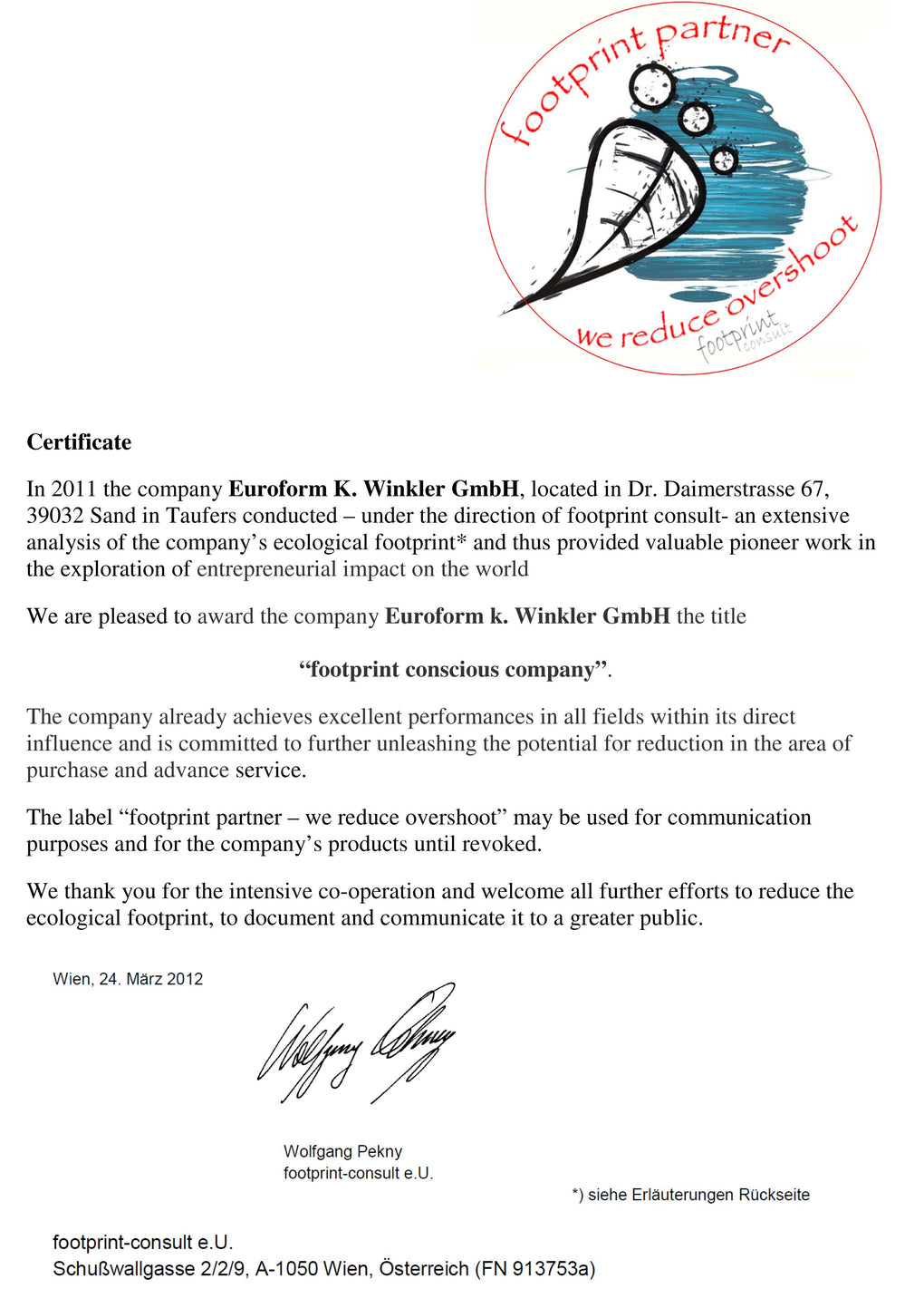 De afgelopen jaren hebben we veel tijd, energie en moeite geïnvesteerd in het consolideren en vestigen van het idee dat ten grondslag ligt aan de managementfilosofie van Euroform-w: het bedrijf runnen volgens het drie-pijler-model, dat wil zeggen door ecologische, sociale en economische aspecten met elkaar in evenwicht te brengen.