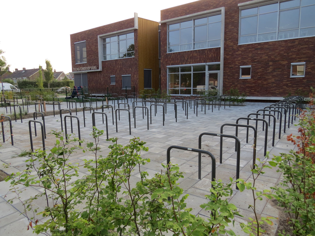 Straatmeubilair, zoals fietsparkeeroplossingen en zitmeubilair, speelt een belangrijke rol op schoolpleinen.