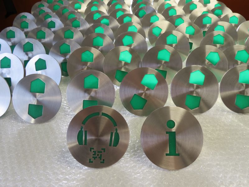 De wegdeknagels zijn gebruikt om de parkeervakken te markeren in de bijzondere ondergrond.