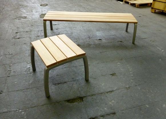 De volledige serie bestaat uit een poef, stoel, vlakke bank en bank met rugleuning.